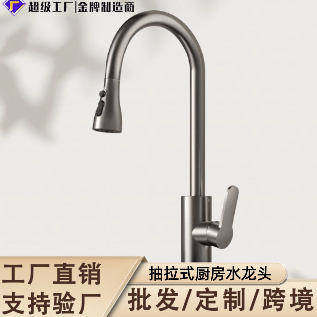 Keran dapur lintas batas zinc alloy tembaga pull-out keran wastafel panas dan dingin yang dapat ditarik grosir pabrik