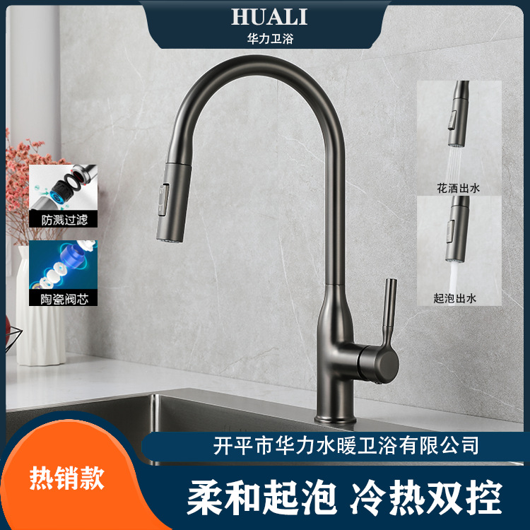 Huali keran dapur abu-abu, keran pull-out berputar dapat ditarik panas dan dingin Internet selebriti