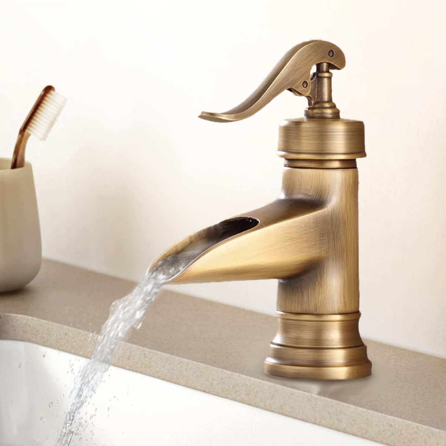 Keran air terjun tembaga satu lubang, keran air terjun panas dan dingin bak cuci kamar mandi kabinet kamar mandi gaya Eropa