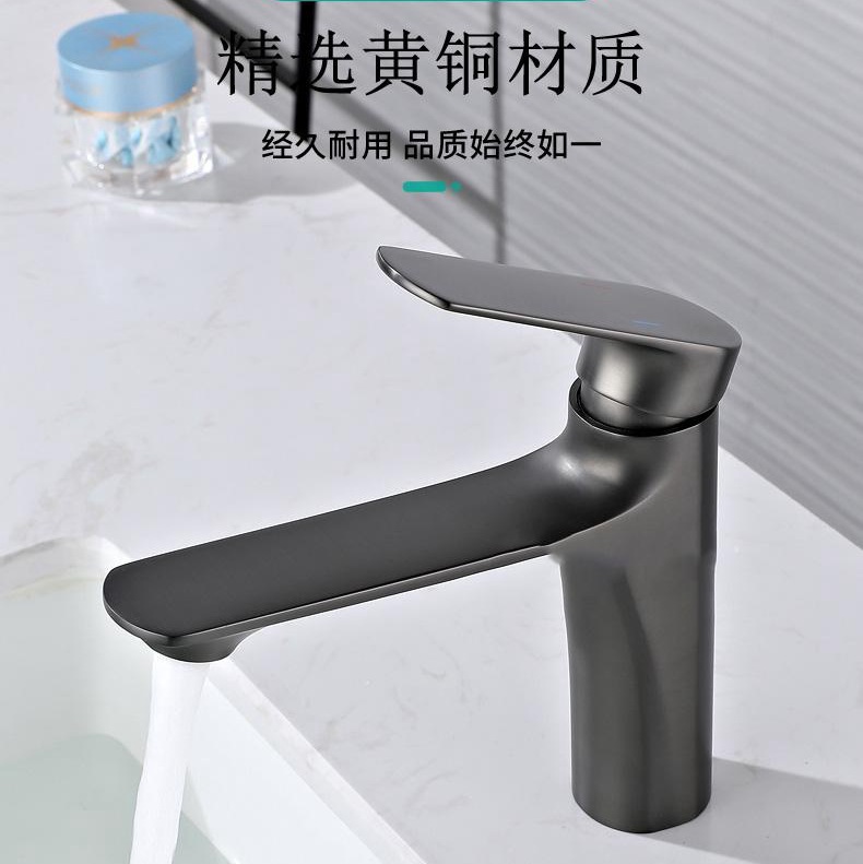 全铜拉丝枪灰色面盆水龙头北欧简约轻奢风台下盆冷 热浴室柜水龙