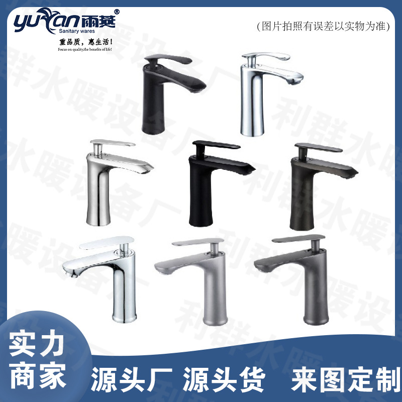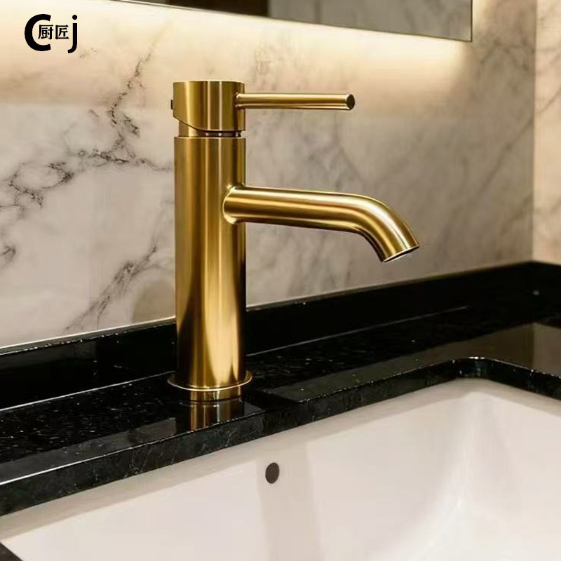 跨境全铜洗脸盆水龙头 拉丝金色黑色镀铬浴室台盆面盆冷热水龙头