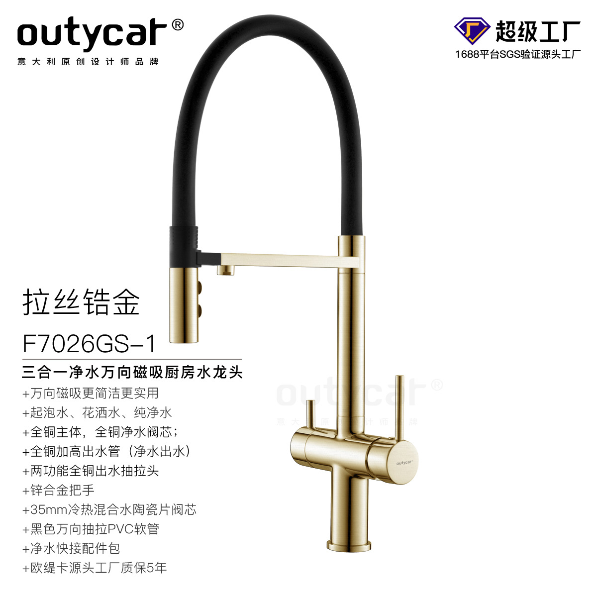 跨境三合一厨房水龙头全铜磁吸式冷热洗菜盆水槽直饮净水龙头批发