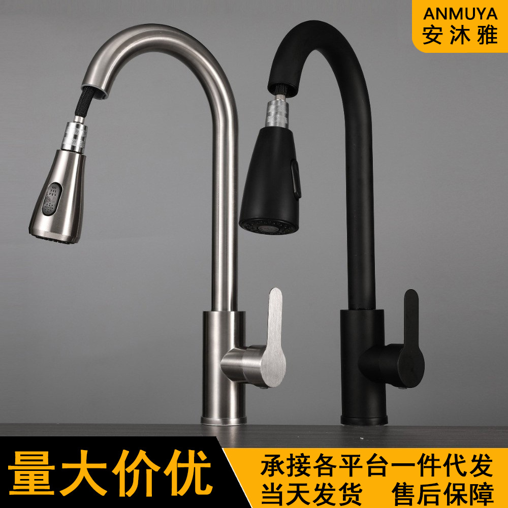 不锈钢厨房抽拉式冷热水龙头伸缩旋转水槽洗菜盆洗碗池防溅水龙头