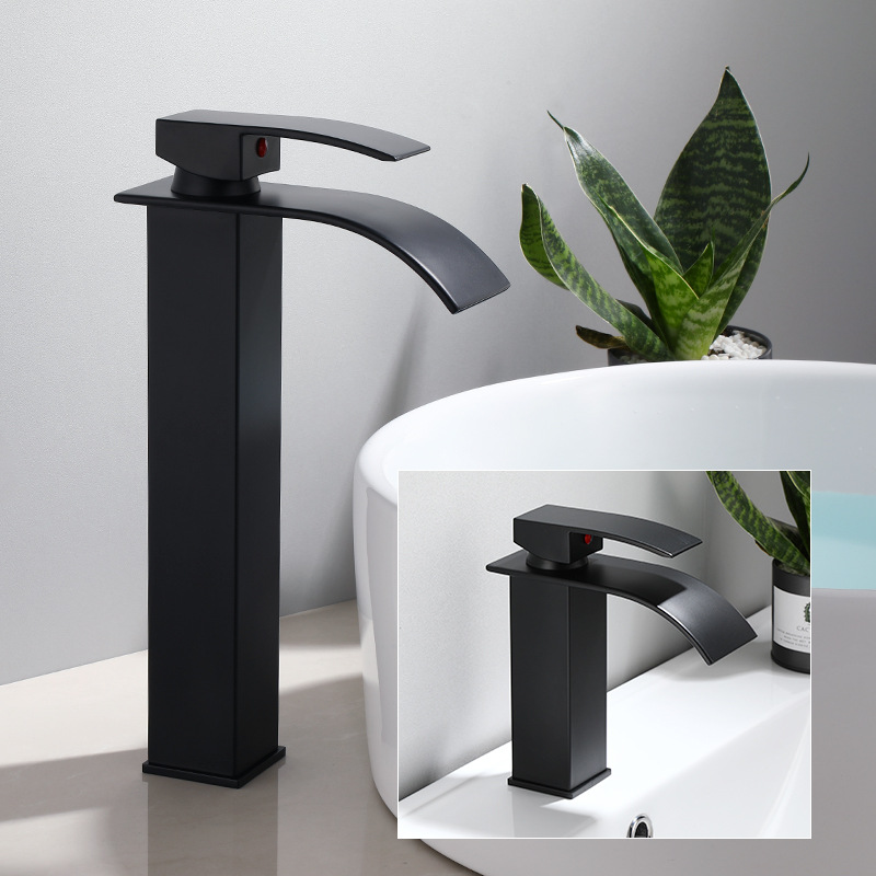 Keran wastafel tembaga, keran air terjun tembaga, keran wastafel, keran kamar mandi lubang tunggal, keran hitam panas dan dingin