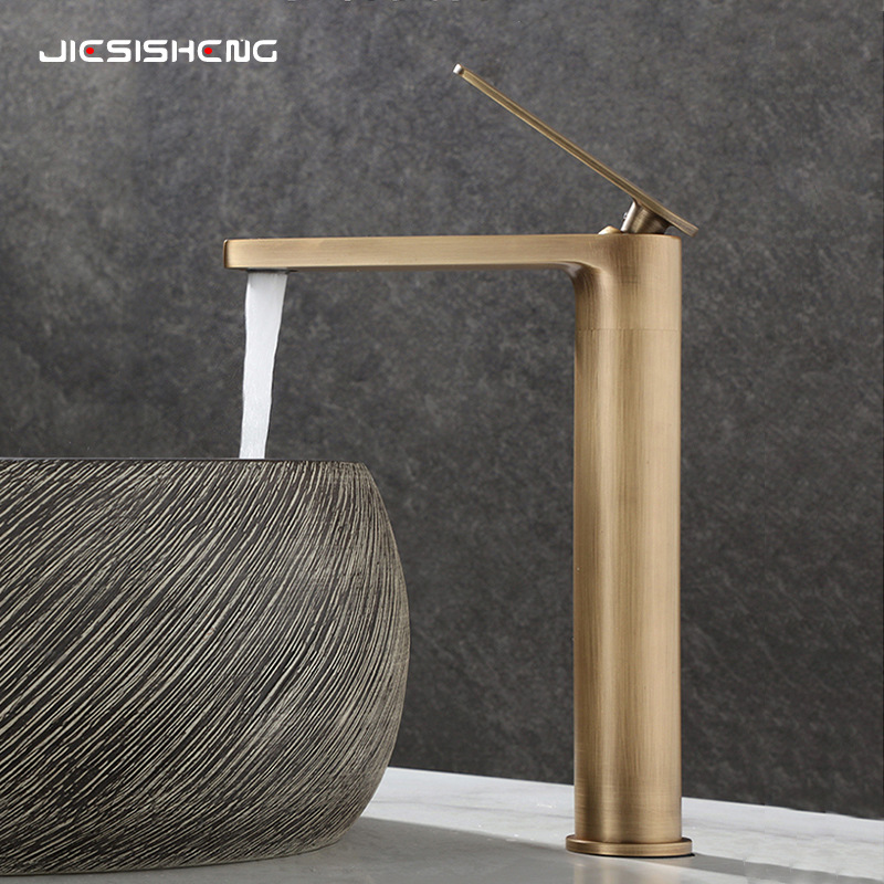 Keran wastafel tembaga antik, lintas batas panas dan dingin, keran meja kabinet kamar mandi, keran rumah tangga tahan percikan panas dan dingin
