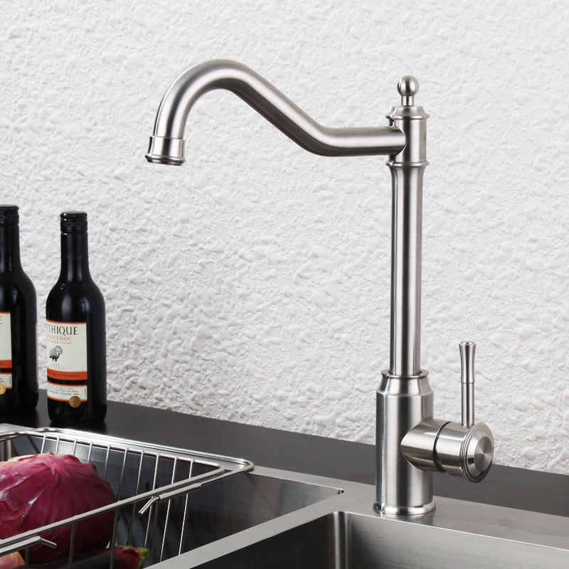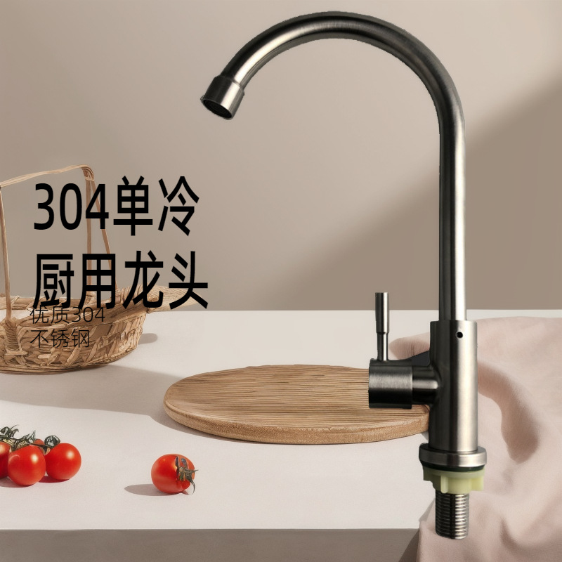 Pasokan langsung pabrik 304 baja tahan karat keran wastafel sayur dingin tunggal bak sayur disikat perlengkapan aksesori keran baja tahan karat