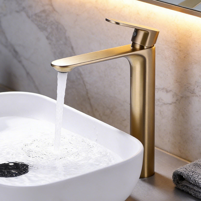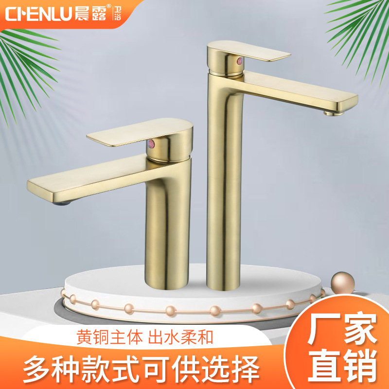 Hotel Kuningan disikat emas elektroplating panas dan dingin konter keran baskom Villa rumah konter baskom keran cuci