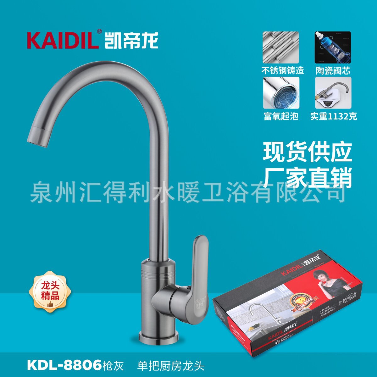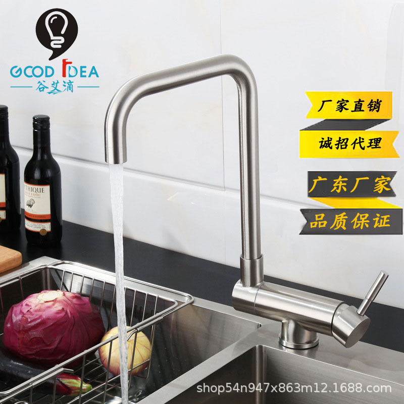 Keran dapur stainless steel gagang dingin, keran stainless steel 304, keran dapur besar vertikal