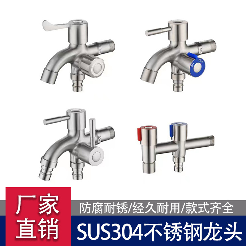 SUS304 keran mesin cuci multifungsi, stainless steel dingin tunggal panjang Cepat terbuka dua kegunaan keran mesin cuci ganda outlet air ganda satu dalam dua keluar