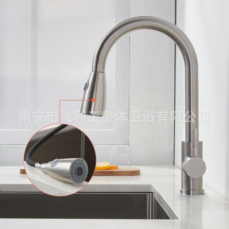 Cross-border keran angkat dapur tidak terlihat, keran dapur besi tahan karat bak cuci rumah tangga tersembunyi keran panas dan dingin