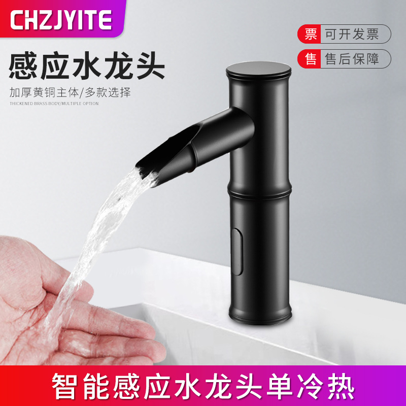 Keran induksi otomatis sensor, keran induksi otomatis air panas tunggal cerdas tipe induksi inframerah mesin cuci tangan tembaga rumah tangga