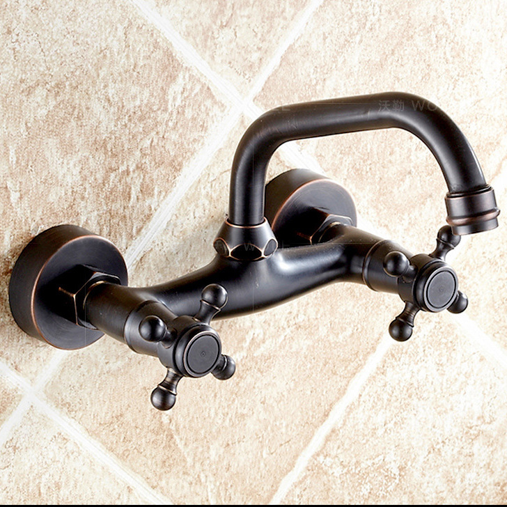 Keran pasang dinding kuningan, keran wastafel antik bergaya Eropa, keran dapur panas dan dingin, keran campur gantungan dinding