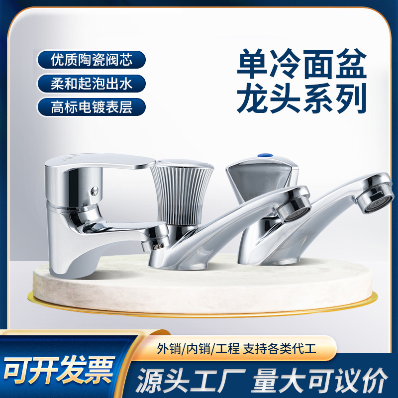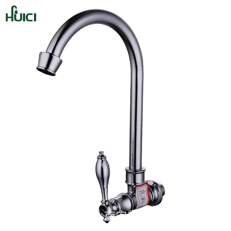 Hui keran dapur pegangan tunggal, keran dingin tunggal wastafel paduan lubang tunggal dinding porselen