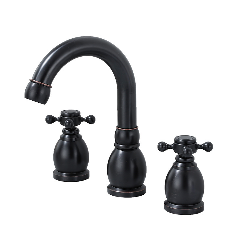 Keran kamar mandi, kabinet kamar mandi wastafel kamar mandi terpisah, tiga lubang keran air panas dan dingin, grosir tembaga