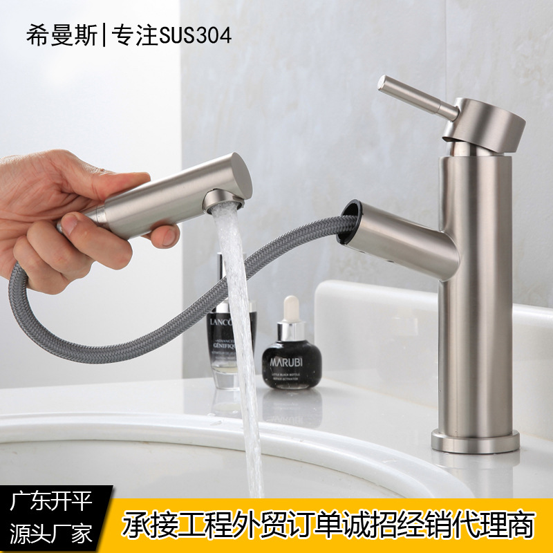 Himans 304 keran tarik bak cuci baja tahan karat keran sampo dapat ditarik wastafel kamar mandi panas dan dingin