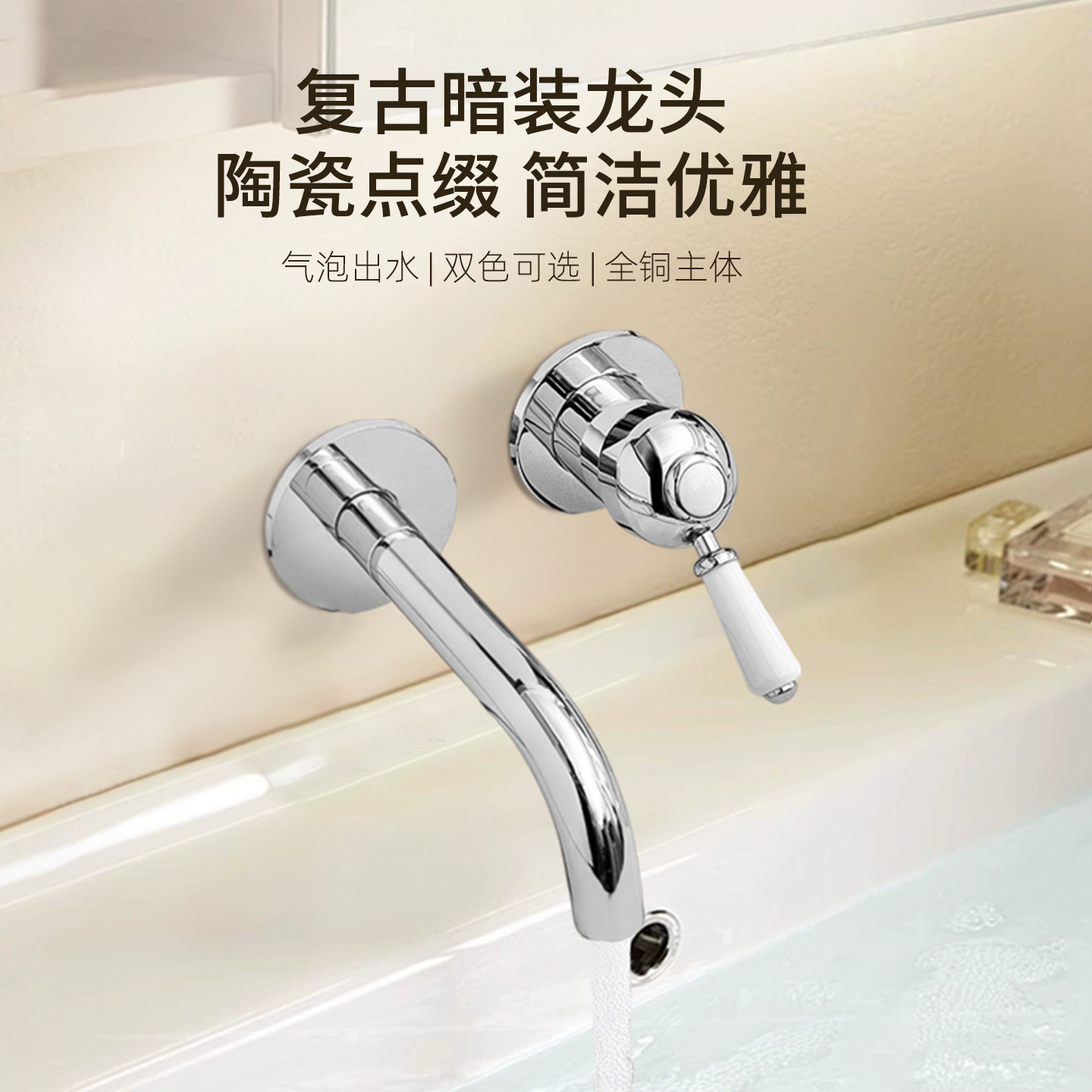 Keran wastafel panas dan dingin lekat tembaga Vila kontrol ganda pegangan tunggal keramik antik pasang di dinding tersembunyi Prancis