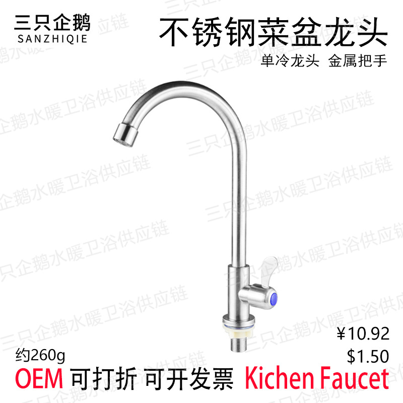 Keran wastafel dapur Stainless steel, keran wastafel sayuran, inti tembaga, keran dapur dingin tunggal, berputar vertikal, keran wastafel sayuran besar, batch nozel air