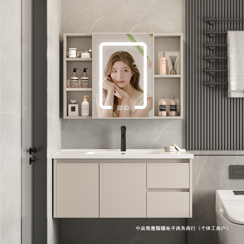 Keramik Keramik Papan Batu Kemewahan Ringan Kombinasi Lemari Kamar Mandi Modern Sederhana Cuci Tangan dan Cuci Wajah Meja Cuci Tangan Cerdas