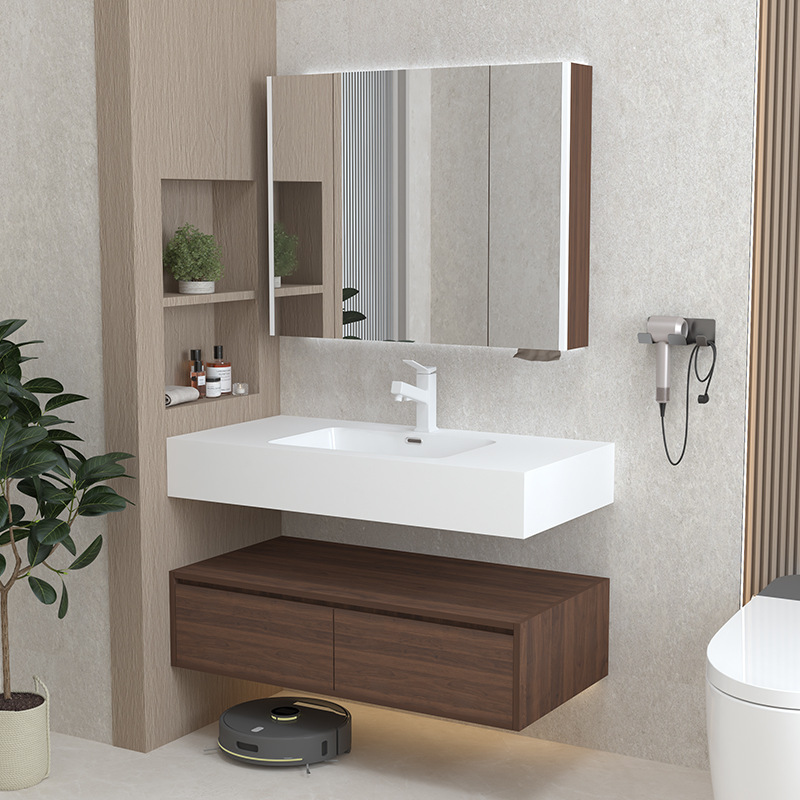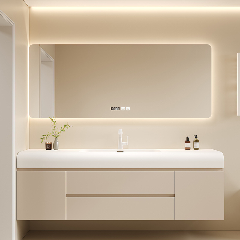 Panel Batu Hot Bend Satu Tubuh Lemari Kamar Mandi Kombinasi Meja Cuci Tangan Kamar Mandi Lemari Baskom Cuci Wajah Sederhana Kayu Solid