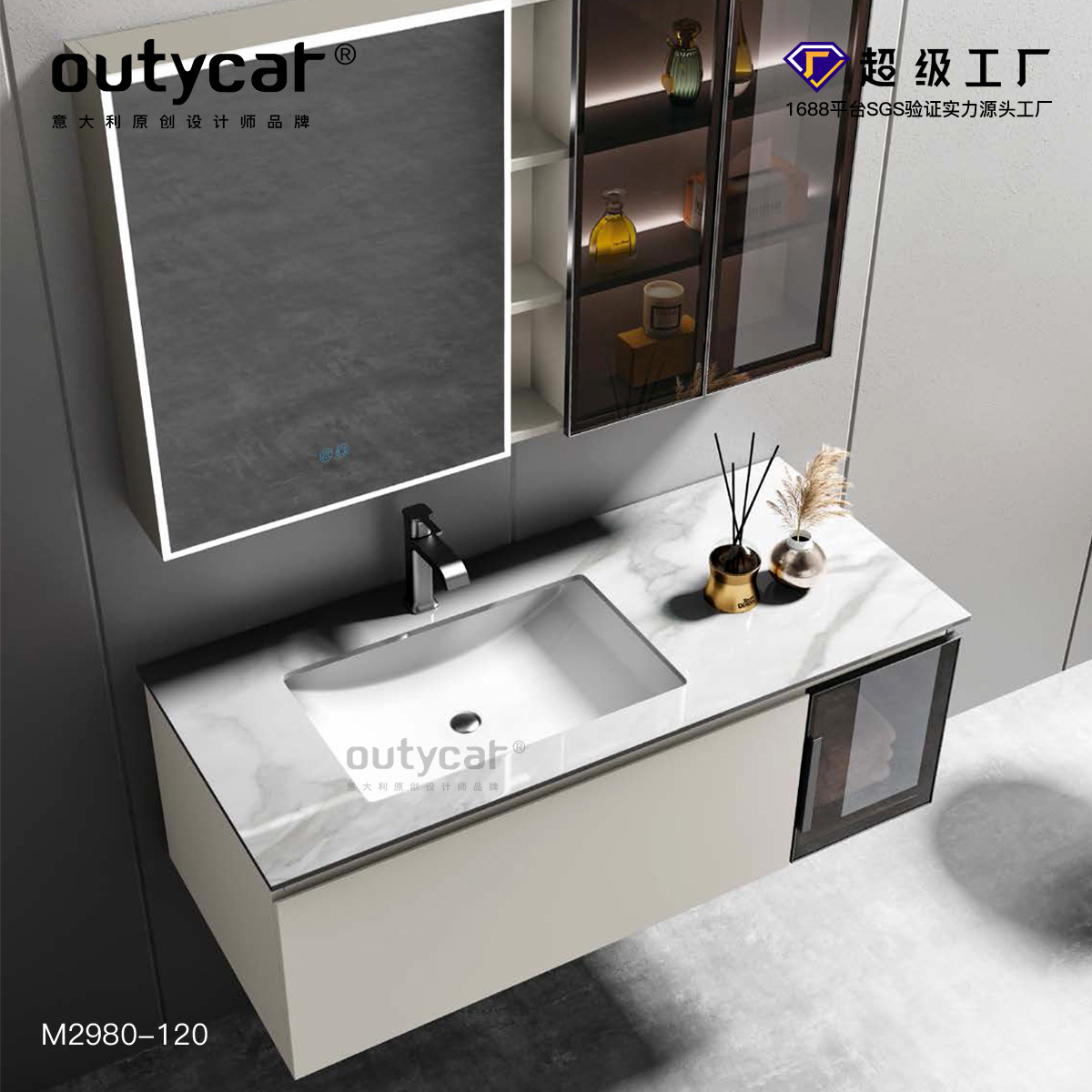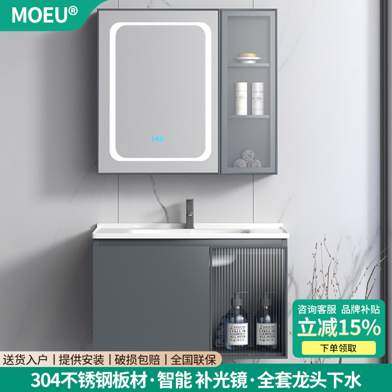 MOEU kabinet kamar mandi, lemari wastafel kamar mandi modern minimalis keramik terintegrasi meja cuci