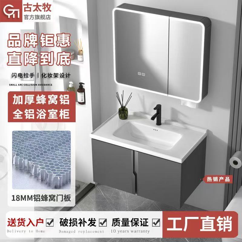 Lemari Kamar Mandi Honeycomb Aluminium Tebal Kombinasi Keramik Baskom Cuci Wajah Kamar Mandi Meja Cuci Tangan Kamar Mandi