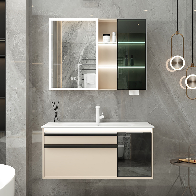 Pabrik langsung ruang rambut aluminium lemari kamar mandi terintegrasi keramik wastafel kombinasi smart cermin penyimpanan meja cuci kamar mandi