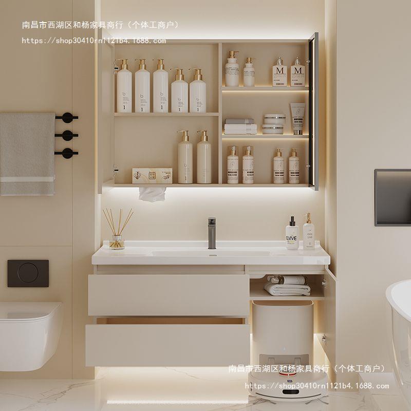 Lemari Kamar Mandi Seamless Papan Batu Kemewahan Ringan Meja Cuci Kamar Mandi Kombinasi Meja Rias