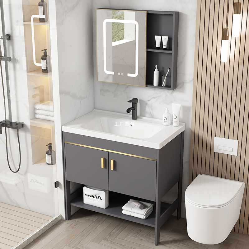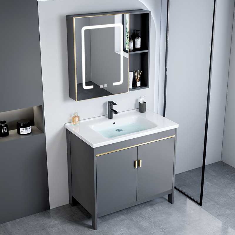 Wastafel lantai aluminium ruang, kabinet kamar mandi kombinasi wastafel modern sederhana terintegrasi