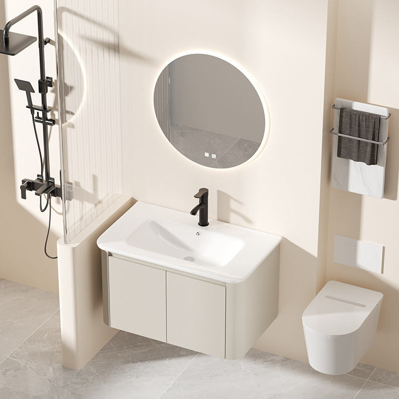 Lemari Kamar Mandi Aluminium Honeycomb Gaya Krim Model Baru Keramik Satu Tubuh Lemari Kamar Mandi Sudut Bulat Meja Cuci Tangan Kombinasi