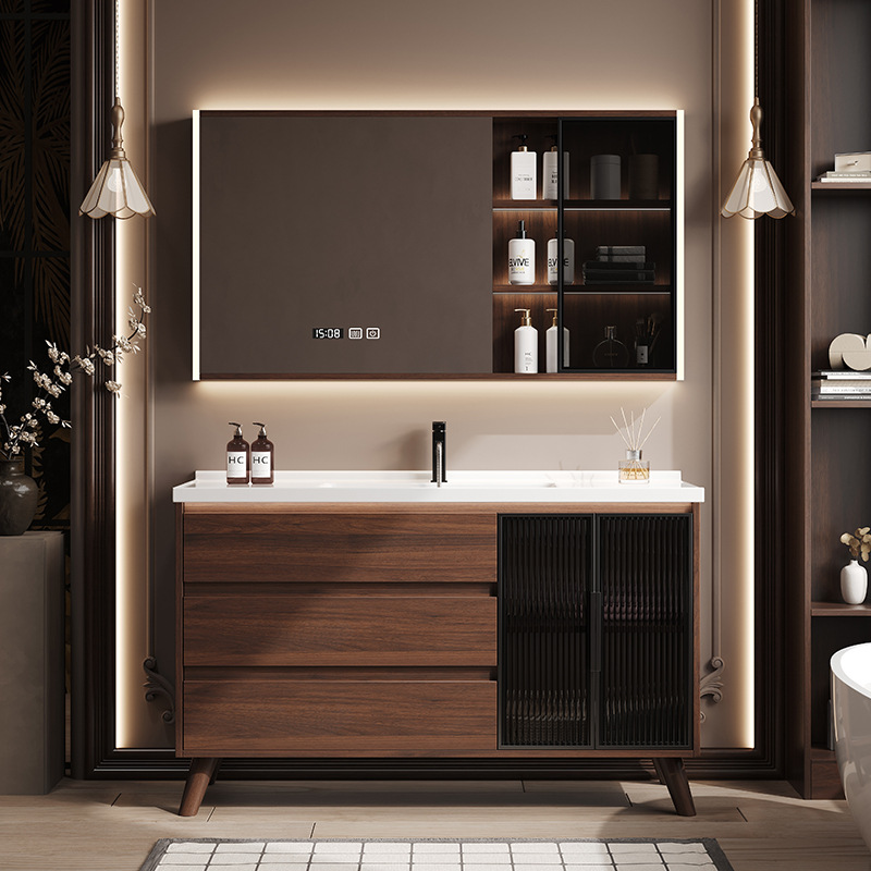 Baskom Keramik Satu Pintu Lemari Kamar Mandi Kayu Solid Lemari Kamar Mandi Tipe Lantai Dengan Cermin Kombinasi Wastafel Baskom Pabrik Penjualan Langsung Grosir