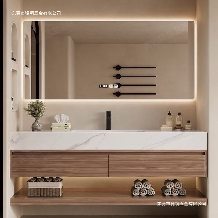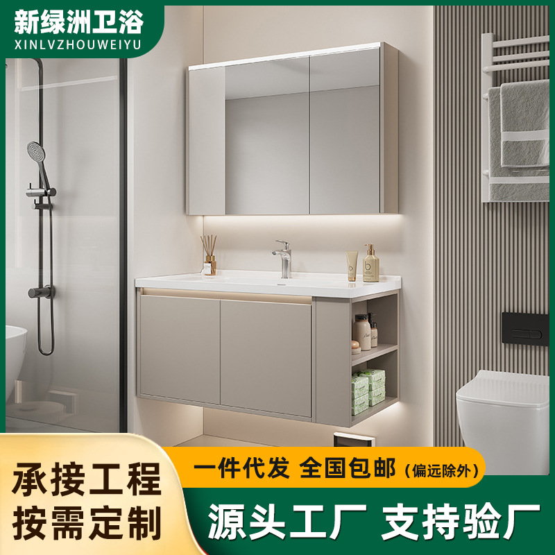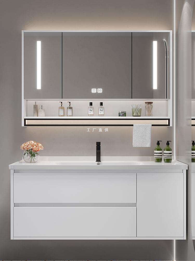 Kabinet kamar mandi, ruang tebal aluminium rock plate terintegrasi basin kombinasi modern meja cuci cermin pintar lemari cuci kamar mandi