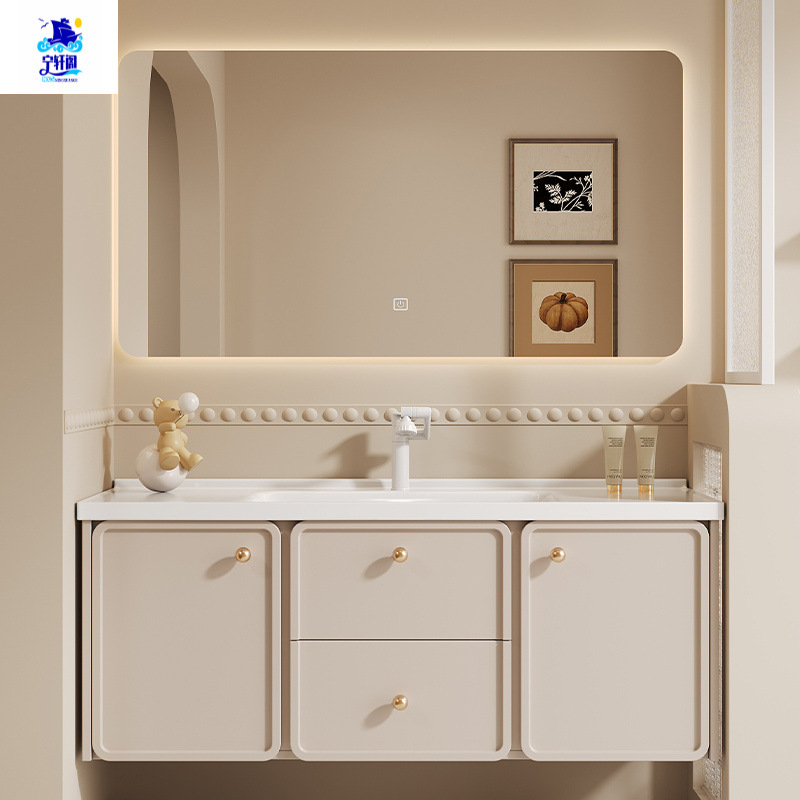 Baskom Cuci Tangan Kombinasi Lemari Kamar Mandi Kayu Solid Multilapis Gaya Krim Baskom Kamar Mandi Baskom Kamar Mandi Baskom Kamar Mandi