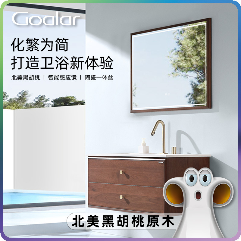 Gaola kamar mandi teknologi rumah washstand 100% kayu solid Amerika Utara keramik walnut hitam baskom terintegrasi kabinet kamar mandi