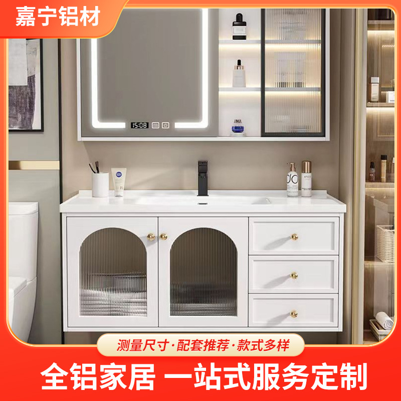 Kabinet kamar mandi aluminium paduan, modern minimalis ruang aluminium kabinet kamar mandi bak cuci gaya krim kustomisasi kabinet bak cuci