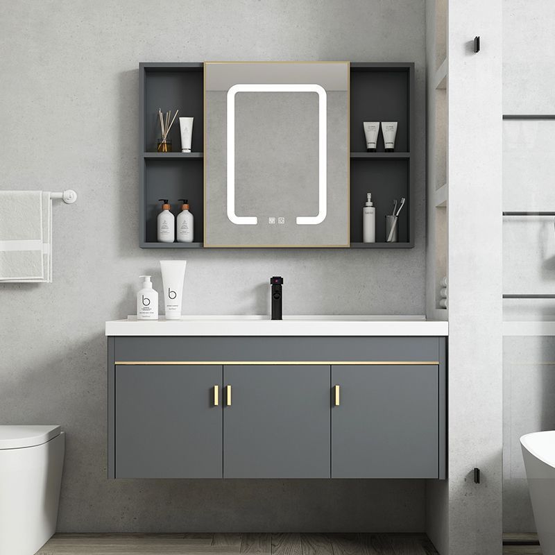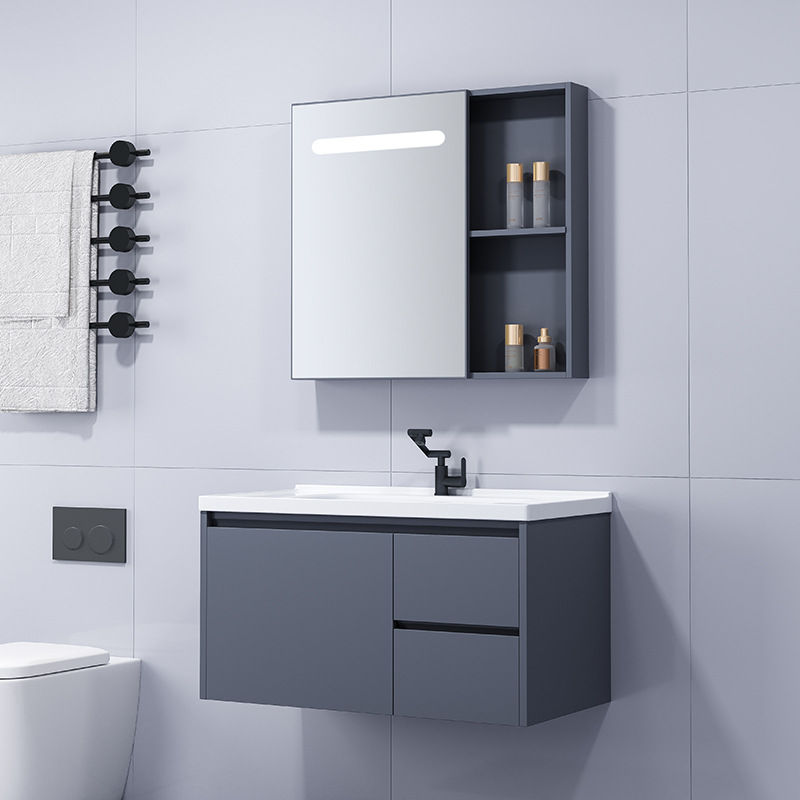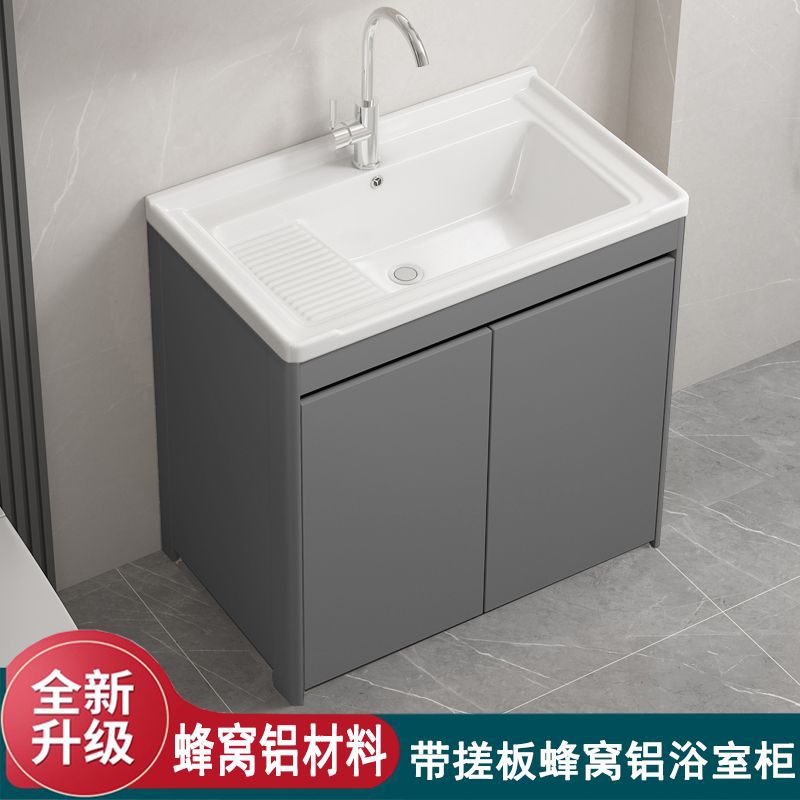 Tipe Laci Ganda Warna Abu-abu Lemari Kamar Mandi Paduan Aluminium Ekstra Tebal Kombinasi Keramik Satu Tubuh Lemari Baskom Cuci Tangan Kamar Mandi
