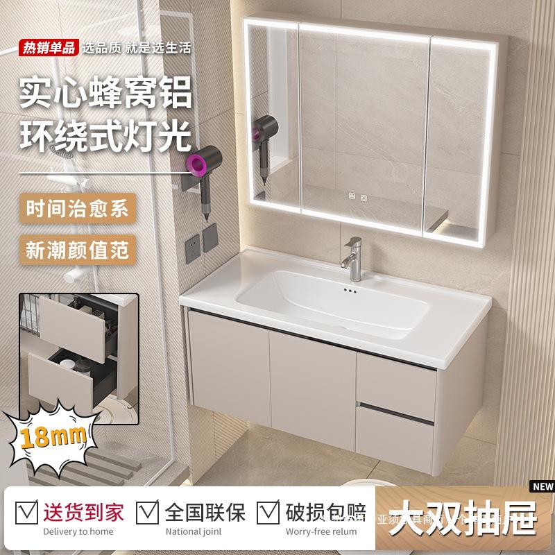 A9L Keramik Krim Satu Tubuh Baskom Aluminium Honeycomb Kabinet Kamar Mandi Laci Kamar Mandi Kombinasi Wastafel Kamar Mandi