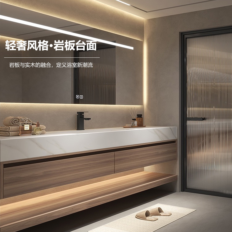 Lemari Cermin Cerdas Papan Batu Toilet Wastafel Cuci Tangan Kombinasi Lemari Cuci Tangan Lemari Kamar Mandi Terintegrasi Nano Rock