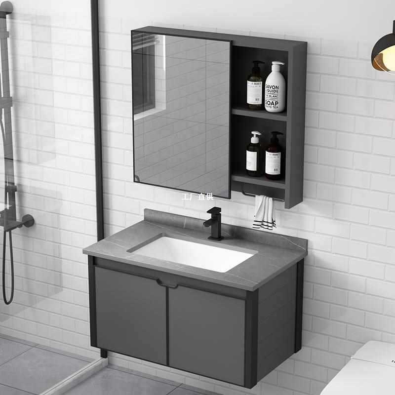 Grosir ruang aluminium kabinet kamar mandi kombinasi sederhana batu piring terintegrasi baskom kamar mandi bak cuci meja kebijaksanaan