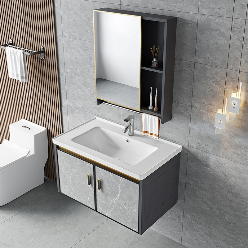 Tipe Unit Kecil Ruang Lantai Aluminium Penyangga Baskom Cuci Keramik Kombinasi Lemari Cuci Keramik Lemari Kamar Mandi Modern