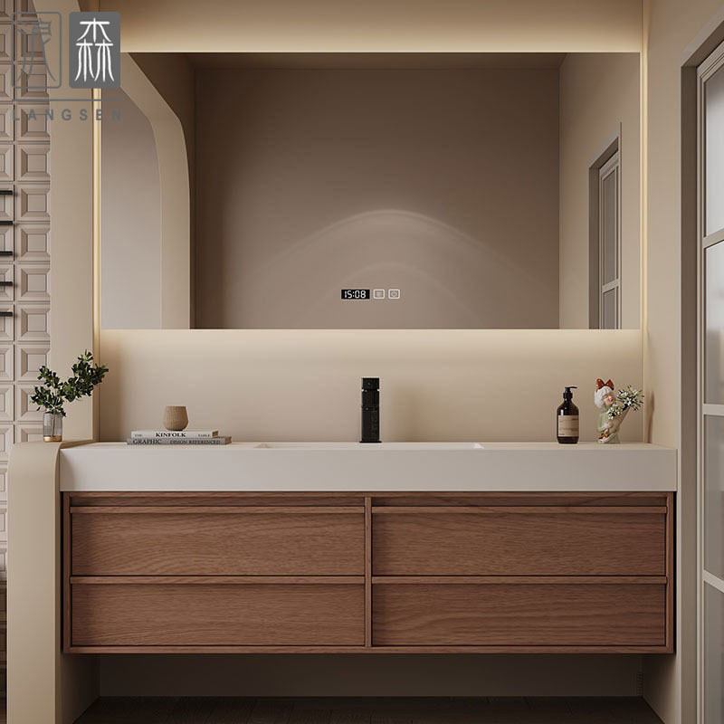 Kombinasi Kabinet Kamar Mandi dan Kamar Mandi Hotel Mewah yang Terjangkau Satu Baskom Kayu Solid Tanpa Cat Cerdas Penghapusan Kabut Anti Trendi