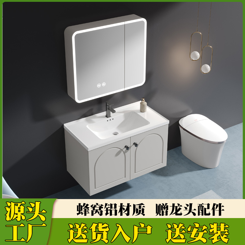 Kabinet Kamar Mandi Luar Angkasa Aluminium Honeycomb Ekstra Tebal Model Baru Kombinasi Modern Sederhana Gaya Cream Keramik Satu Tubuh Baskom Cuci Wajah