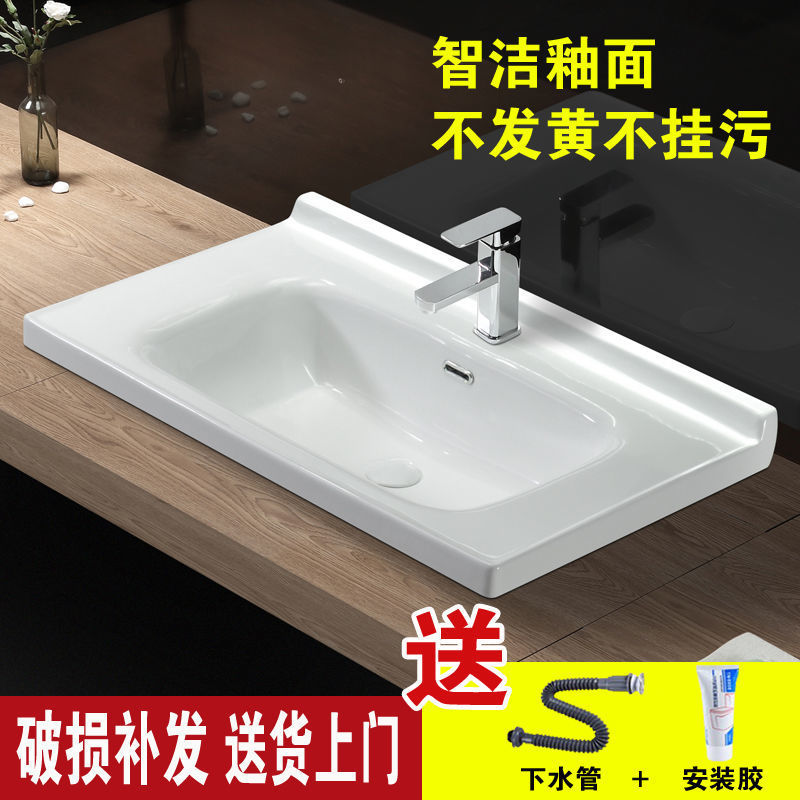Chaozhou pabrik langsung putih murni high-gloss terang batu piring mulus baskom Cuci meja cuci lemari kamar mandi