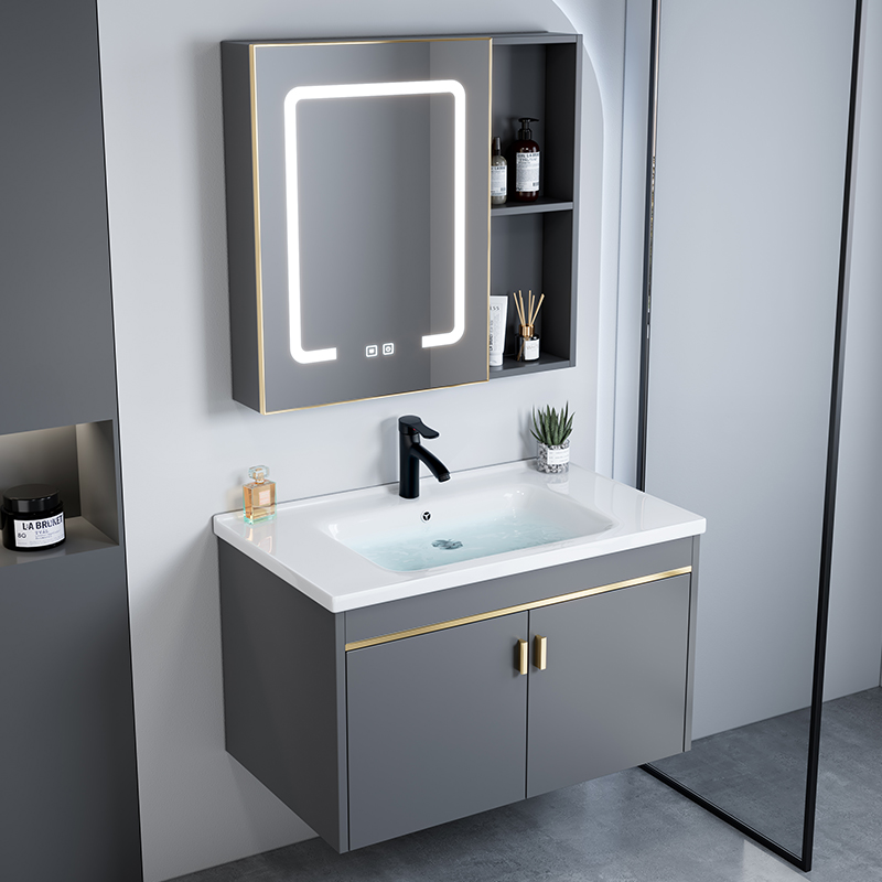 Meja Cuci Rumah Tangga Baskom Keramik Terintegrasi Lemari Kamar Mandi Tipe Kecil Ruang Aluminium Kombinasi Lemari Cuci Kamar Mandi