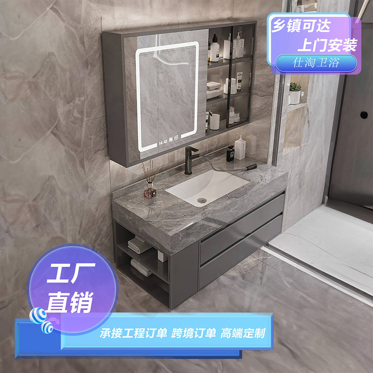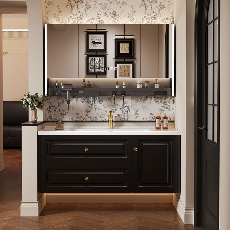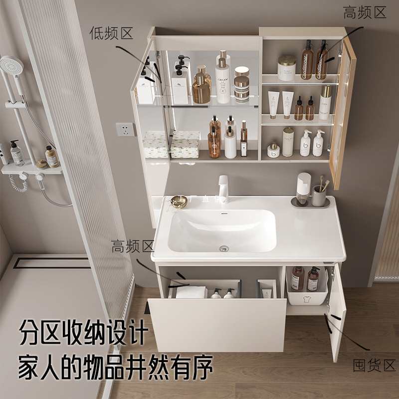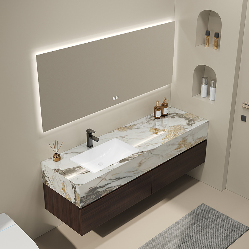 Lemari Kamar Mandi Terintegrasi Papan Keramik Kemewahan Modern Ringan Kayu Solid Cerdas Lemari Kamar Mandi Cuci Tangan Meja Cuci Wajah