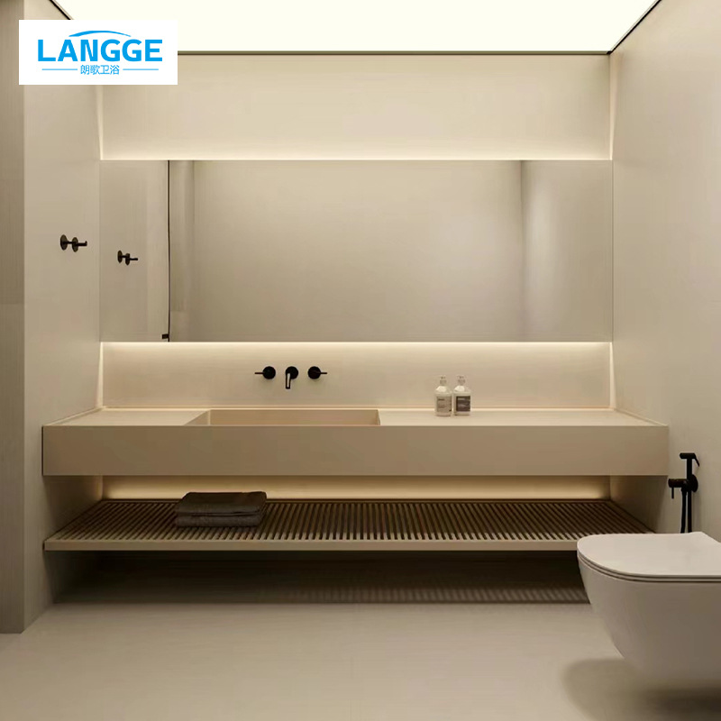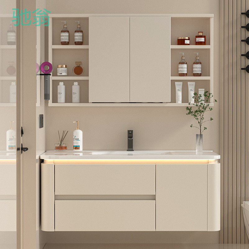 Papan Batu Keramik Seamless Kombinasi Lemari Kamar Mandi Sederhana Meja Cuci Tangan Baskom Kamar Mandi Set Kamar Mandi