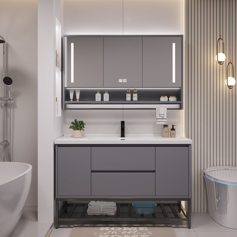 Ruang Aluminium Kabinet Kamar Mandi Kombinasi Meja Cuci Kamar Mandi Baskom Batu Terintegrasi Baskom Cuci Keramik Lemari Cermin Cerdas