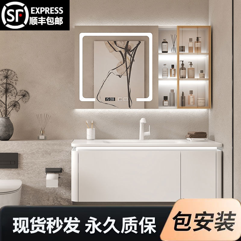 Keramik Modern Sederhana Kombinasi Lemari Kamar Mandi Kombinasi Lemari Cermin Cerdas Kemewahan Ringan Cuci Tangan Wastafel Kamar Mandi Mandi