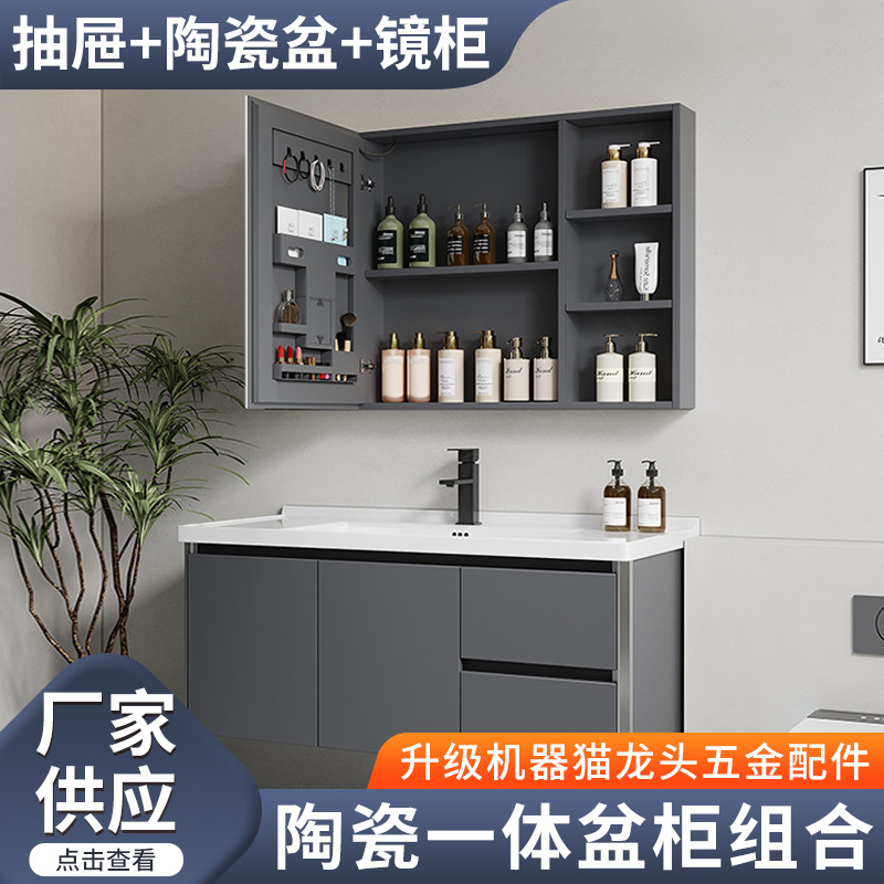 Baskom Cuci Tangan Terintegrasi Keramik Sederhana Modern Kombinasi Lemari Kamar Mandi Aluminium Luar Angkasa Baskom Wajah