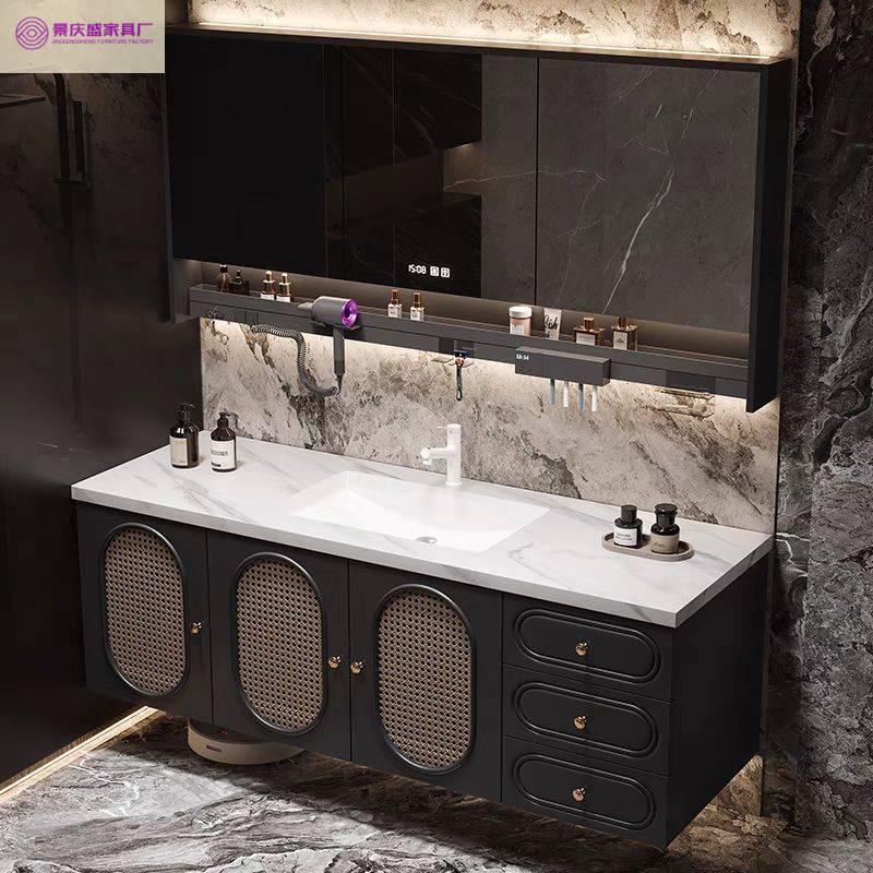 Lemari Kamar Mandi Cerdas Amerika dan Prancis Lemari Kamar Mandi Modern Ringan dan Mewah Meja Cuci Wajah Kolam Kayu Oak Kombinasi Lemari Baskom