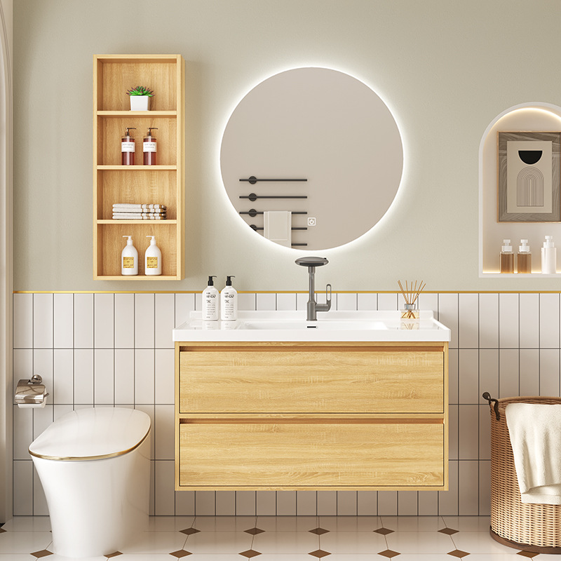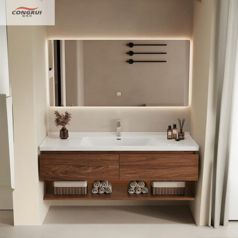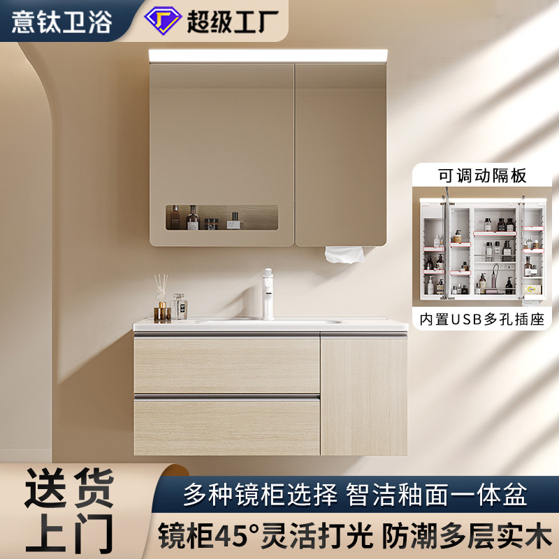 Lemari Kamar Mandi Warna Kayu Asli Lemari Cuci Wajah Kombinasi Baskom Cuci Tangan Keramik Satu Tubuh Meja Kumur Gantung Cerdas